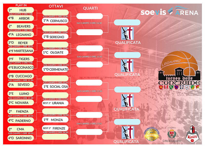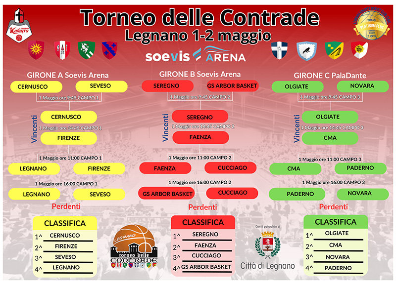 Per i Knights è il momento dei playoff per la prima squadra e le squadre giovanili, ma anche il periodo del Torneo delle Contrade del Palio di Legnano che inizia con le qualifiche e si chiude nel ponte dei 2 giugno con le finali.